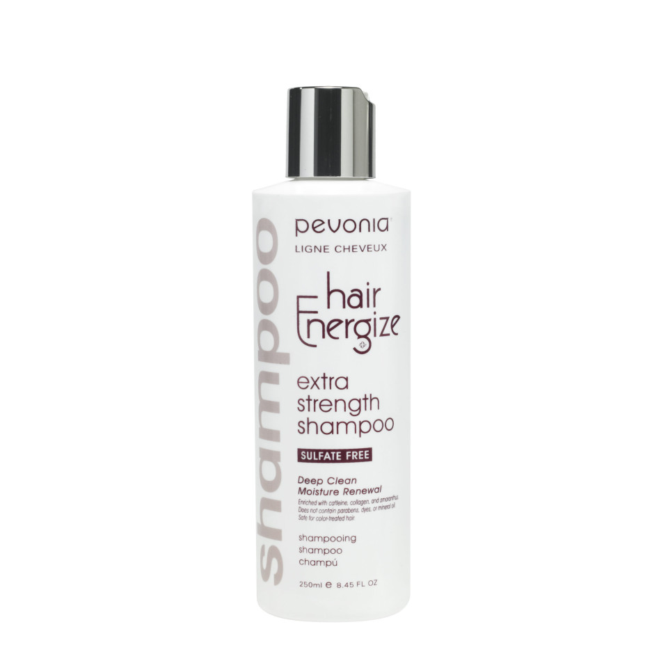 Transform your hair with Pevonia Hair Energize Extra Strength Shampoo—for stronger, thicker, and more vibrant hair with every wash.