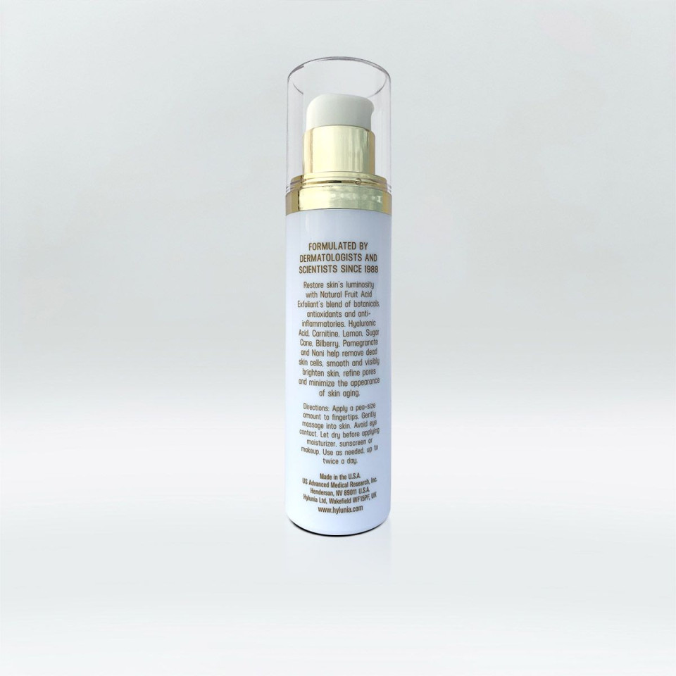 This exceptional product contains multi-fruit acids (extracts of Bilberry, Sugar Cane and Sugar Maple, Lemon and Lime) which exfoliate the skin, slough off dead skin cells, and help reduce the appearance of fine lines and wrinkles.